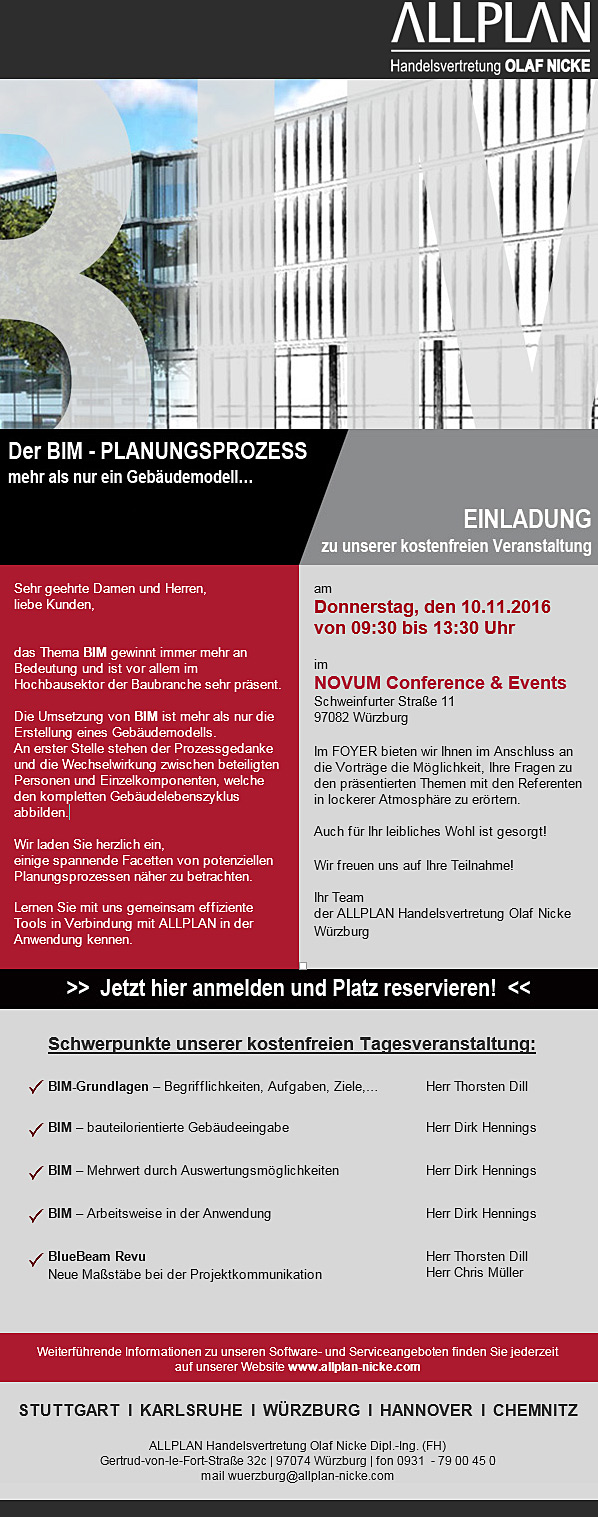 Stuttgart im SpOrt am 9.11.2016 15 - 18 Uhr ALLPLAN 2017 on Tour weitere Infos